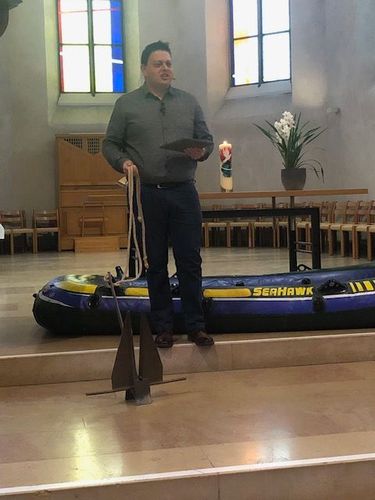 Diese Gewissheit haben wir am Beispiel eines Schiffchen und eines Ankers vorgestellt und vertieft. Gott lässt uns nie allein, auch wenn die Fahrt übers Meer des Lebens - einzeln und in Gemeinschaft - noch so wild ist.